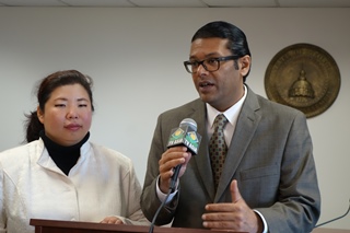 Farooq Mughal spoke of the role of the AAPI media in overturning the conviction in 1983 of Fred Korematsu, a civil rights hero who objected to Japanese-Americans being placed in incarceration camps during World War II. This media event at the Capitol was timed to coincide with Fred Korematsu Day. Bonnie Youn also spoke of the plight of undocumented students striving to better themselves and care for their families by attending college, getting drivers licenses, and working legally.