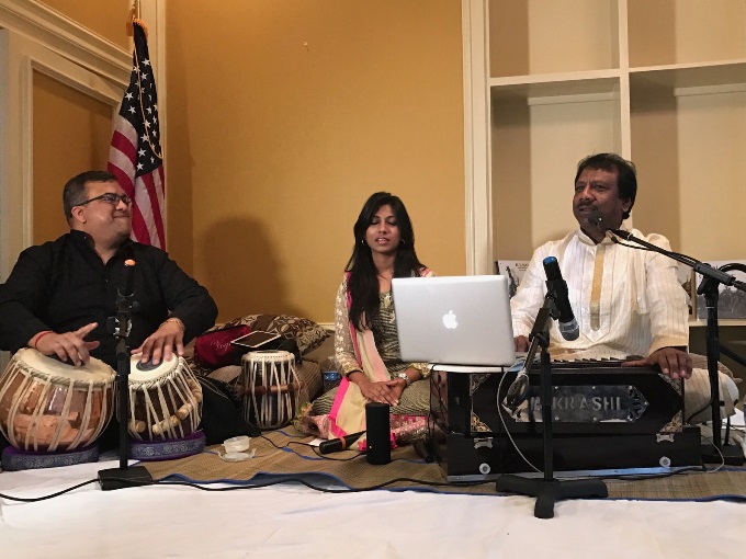 For the first time at the Atlanta Consulate, between Navratri and Diwali, the Cultural Officer and Consul, Community Affairs, Hon. Dharam Veer Singh and his team hosted “Irshaad,” an evening of light classical bhajans and ghazals by the Begum Akhtar Award recipient, Sudhir Narain. By earning this award, Sudhir Narain joined the ranks of ghazal maestro the late Jagjit Singh and the melodious Anoop Jalota, besides others legends in the field. On Sunday October 16, 2016 in Atlanta, he was accompanied by his gifted daughter Kritika Narain on vocals and the very talented and always visibly happy Dexter Raghunanan on tabla.