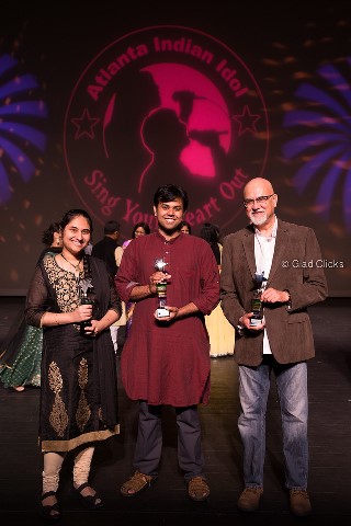 There was never a dull moment at the four-hour program including dynamic dance performances from various dance institutes across Atlanta. An extremely capable panel of judges including Dr. Kakali Bandyopadhyay, Sujatha Rayburn, Sri Sangodkar, Amitava Sen, and Dr. Lakshmi Rao provided feedback and evaluated contestants based on various aspects of their performance such as tonal quality and accuracy, rhythm, diction, overall mastery of style, etc. Neeta Shenvi served as statistician. The show was emceed by the energetic duo Archith Sheshadri, broadcast journalist for CNN International, and Anu Romesh, a previous Idol winner.