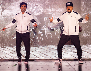 Durgesh Das (right), Top Fundraiser awardee, dancing with Sachin Iyengar as the “Gully Boys of Atlanta.” |