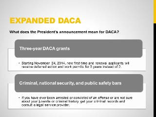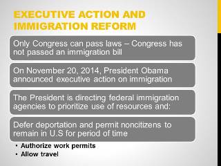 Discussion included the President's Executive Order on DACA and DAPA, what challenges or barriers exist, and strategies around messaging and outreach.