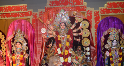 Friends and families at both events hugged each other and wished “Shuvo Bijoya” (auspicious victory), the Bengali greeting for the joyous Durga Puja.