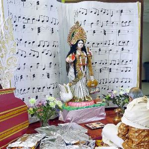 The new setting for Ma Saraswati, bestower of knowledge, music, and art. (Photo: Madhumita Chakraborty)