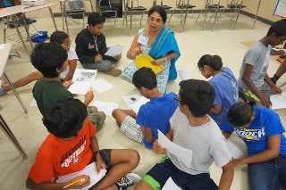 Learning Hindi in summer camp at Piney Grove Middle School. |