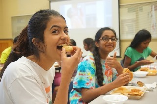 Day-camp kids enjoyed eating Indian food at lunchtime and preparing it in the "food club."