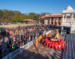 The theme of the centennial celebration was Param Shanti (eternal peace) and centered on three qualities that Pramukh Swami Maharaj consistently exemplified: humility, universal love, and sincere faith in God.