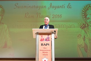 The Sheriff of Gwinnett County, Sheriff Butch Conway (pictured at left), was in attendance and remarked at the intense youth involvement in the celebrations and other BAPS activities and programs. He added, “I really appreciate the Indian community and BAPS for the way you promote values with your children.”
