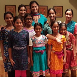 (Left) Darshini Natyalaya's 2015 summer camp students with teachers Gayatri Seshadri and Dr. Anita Vallabh.