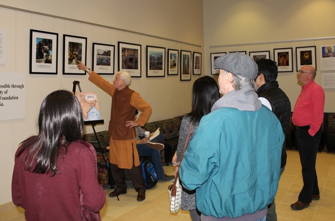At the grand opening on January 23, exhibit visitors enjoyed traditional Indian food catered by Moon Indian Cuisine. Arnett led a group through the exhibit examining the symbols, meaning, and interpretation of each photo. Food and travel writer and founder of the nonprofit organization Go Eat Give, Sucheta Rawal, and cyber security professional Dipak Rath attended the opening. Natives of India, they both wanted to see how a person who didn’t come from India viewed the country.