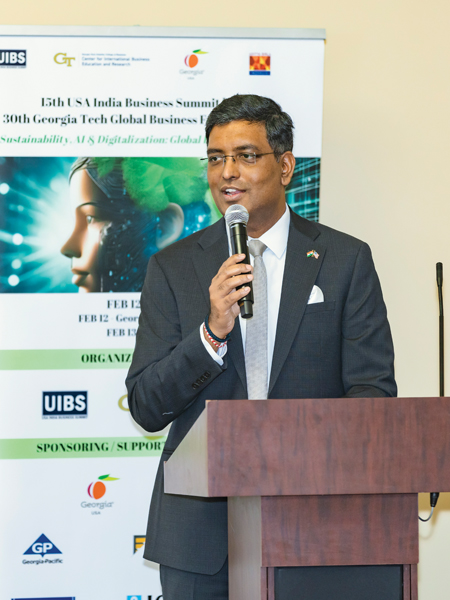 The USA-India Business Summit and Georgia Tech Global Business Forum hosted a high-impact seminar on Sustainability, AI & Digitalization: Global Drivers of Growth. It brought together thought leaders, industry experts, and policymakers to discuss the evolving role of technology in shaping the future of global business. Held at GA Tech on the 12th and virtually on the 13th of February, the seminar focused on critical themes, including the future of sustainability and the challenges of the workforce in the sectors of Environmental, Social, and Governance (ESG). The AI era, data-driven enterprise growth, and cybersecurity best practices for competitive advantage were the focus points.