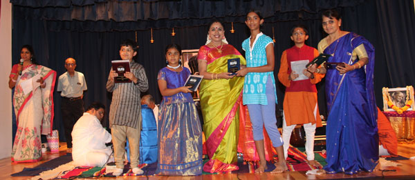 Dr. Ram Sriram, President of CAMAGA, gave a brief review of the concert, and Mrs. Anu Nathan, chair of the essay competition, then announced the winners. Each essay highlighted the contributions of M. S. Winners were:
