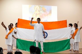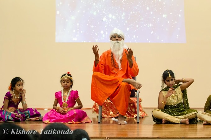 Almost all the Bala Vihar children and parents participated with much enthusiasm and learned a lot along the way about Gurudev’s life story. There were coordinated dances, selected scenes from Pujya Gurudev’s life time, bhajans, and more. A total of 55 students and 17 scenes were ready within three weeks. Each and every Bala Vihaar student, even the ones who came forth at the last moment was placed in the show. The dances were choreographed to perfection to the songs “Vande Mataram” and “Gurudev.” The costumes were well suited for each scene along with the props. Additionally, the direction was amazing.