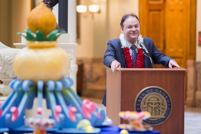 Jigar Patel gave the welcome, explaining the significance of Diwali: “It is certainly an honor to bring a festival that dates back 5,000 years to our own Georgia Capitol.” Diwali is a “mosaic of color, pageantry, beauty, delicacies, music, dance, and ritual. … We are all on a daily quest to celebrate the good, light, and love in us. Today’s symbolic décor and diyas represent Enlightenment over blind faith; Prosperity over poverty; Knowledge over ignorance; Good Health and well-being over disease; and Freedom over bondage. It is an honor to celebrate Diwali here and we are extremely thankful.”