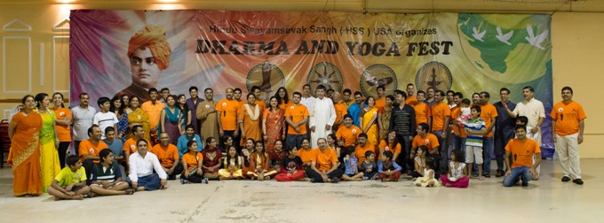 Hindu Swayamsevak Sangh (HSS)—a socio-cultural organization that aims to unite the Hindu community in order to preserve, practice, protect, and promote Hindu ideals and values—has been organizing events throughout the year to commemorate the 150th birth year of Swami Vivekananda. This Dharma and Yoga Fest was the culminating event of this year-long celebration. More than 100 Atlanta-based HSS members had been working for the past 6 months to make this event possible.