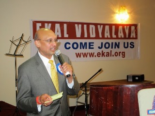 The five wicks of the ceremonial lamp were lit by five luminaries of the Atlanta community: Hon. Srinivasan Rangachari, Deputy Consul and Acting Consul, Consulate of India in Atlanta; Harsha Agadi, Chairman of Quiznos and several other food and related corporations; Dr. Jagdish Sheth, Professor of Marketing at Goizueta Business School, a renowned scholar, prolific writer, and thought leader; Suresh Sharma, CEO of Innovolt and JS3 Global, author and internationally acclaimed business leader; and Mohan Kapur, motivational speaker and executive coach. The last three have been on Ekal’s Advisory Board ever since they were panelists on Ekal’s Power of Education Forum held in September 2014 and were impressed with Ekal’s work.