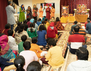 (Left) GVA Youth singing the glories of the Shrimad Bhagavad Gita.