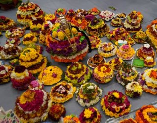 Bathukamma (meaning ‘Oh Goddess, come back to life’) is a festival celebrated by Telugu speaking people all over the world during September or October (Badhrapada Masam). Women create cone-shaped bathukammas using seven layers of colorful flowers, topped by Gouramma made with turmeric and two incense sticks. This Bathukamma is played for nine days followed by Vijaya Dashami, also known as Dussehra. This festival is very popular in the Telangana region.