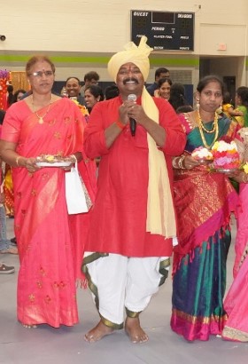 After being introduced by Subbarao Maddali, Cultural Secretary of TAMA, Dr. Srinivas connected immediately with the audience, addressing women affectionately as akkalu and men as annalu. He sang several folk numbers popular in three different regions of the Telugu States, Rayalaseema, Coastal Andhra, and Telangana. He asked trivia questions about Bathukamma and gave prizes for correct answers.