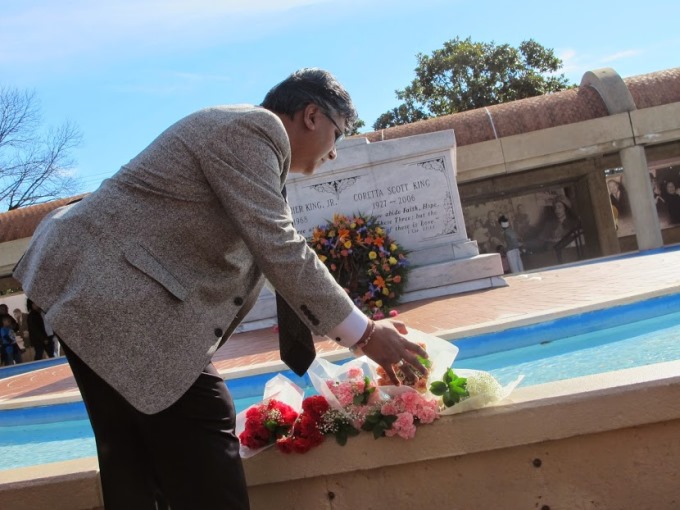 Raj Razdan offered the thanks, and the gathering “Walked in Peace” to the King crypts, where bouquets were placed as homage to the champions of Civil Rights Dr. King and his wife Coretta Scott King.