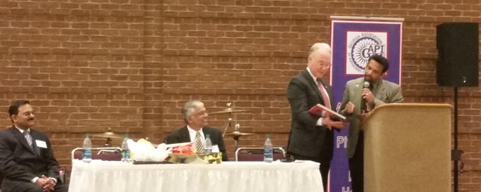 Chief Guest Congressman Tom Price, M.D, chair of the House Budget Committee in Washington D. C., spoke about difficult issues faced by physicians and patients under the current healthcare system. He explained what he and his colleagues are working on to provide better healthcare and discussed the future of healthcare insurance coverage. Representative Price spent time meeting with the physicians individually and in groups, discussing their needs in taking care of their patients. Dr. Indrakrishnan commended him on his astuteness in healthcare issues and for acting as a voice for physicians and patients in Washington D.C.; he presented a book titled Hindu Temples in North America: a Celebration of Life, by Mahalingum Kolapen, to Rep. Tom Price on behalf of GAPI.