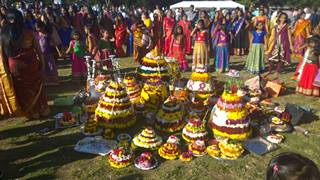It was a special afternoon, made even more pleasant thanks to sunny weather and the pleasant breeze wafting through the spacious park. The long line of Telengana women clad in colorful silks was a sight to behold, and would surely have pleased the goddess Gauri herself, the deity of Batukamma.