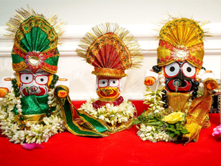 [Left] Lord Jagannatha, Lord Baladeva & Shreemati Subhadra devi