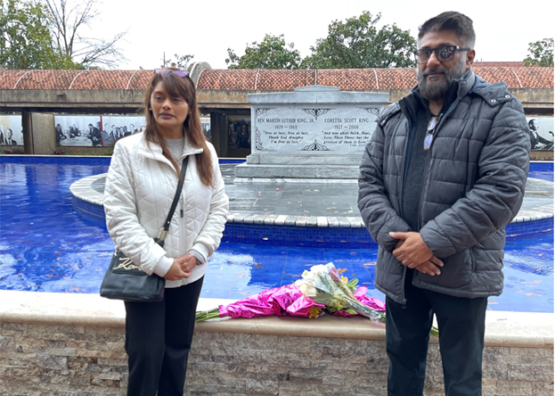 [Top] Filmmaker Vivek Agnihotri and his wife, actress Pallavi Joshi, at Kings’ Crypts in Atlanta.