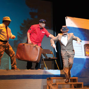 Giving a brief overview of the play, Ms. Kesavarapu explained that the drama is an educational event on Gandhian philosophy. The script was developed based on research of many writings of Martin Luther King, Jr., Gandhi, Jinnah, Paramhansa Yogananda, and original audio and video clippings. Thirty-three actors, some with multiple parts, spent six months preparing. The show opens in February 1959 with Martin Luther King Jr.’s visit to a school in Kerala, where the Principal introduces him to the Dalit students as “a fellow untouchable from the USA.” At first King is shocked, but then, thinking of the plight of the blacks in the USA, he agrees. King, played by Barry Carter, becomes the narrator of the play. Carter, with his statuesque demeanor and forceful delivery, was the image of King and played his role to perfection.