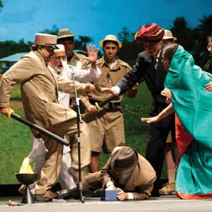 There were light moments in amusing exchanges between Gandhi and Kasturba, and many touching scenes as when the Hindu father enraged with grief could listen to Gandhi and receive advice on bringing up a needy Muslim boy as his own and even as a Muslim. We saw Gandhi breaking his fast after learning that the rioting between Hindus and Muslims (causing heavy casualties in both communities) had stopped; Jinnah feeling insecure about Muslims in India after British leave and demanding separate homeland for Muslims; and the climactic ending when Gandhi was shot by a distraught Hindu over the dismembering/partition of India. The two and half hour play passed quickly, interest never flagging.