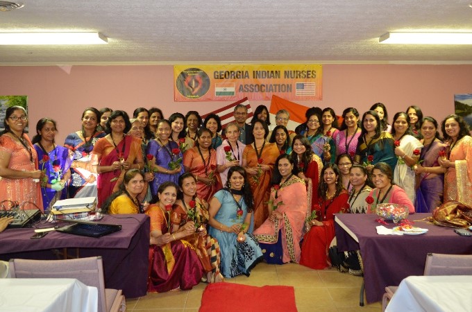 The Georgia Indian Nurses Association (GINA) had its very colorful and beautiful annual Nurses’ Day celebration on May 12, 2017 at St. Thomas Orthodox Church in Lilburn, Georgia. The ANA declared the 2017 Nurse’s Week theme to be the “Year of the Healthy Nurse,” focusing on “Nursing: the Balance of Mind, Body, and Spirit.” Chief guest was Dr. Kumar V. Udhayakumar, Chief of the Genetics and Immunology Laboratory, Research and Development Unit, Malaria Branch, for the Centers for Disease Control and Prevention (CDC).