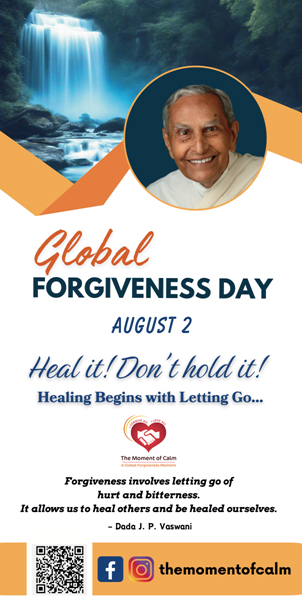 August 2, at 2 pm local time, people are encouraged to pause for 2 minutes to seek forgiveness or forgive themselves and others. Dada JP Vaswani’s Prayer invokes the strength to let go and heal.
