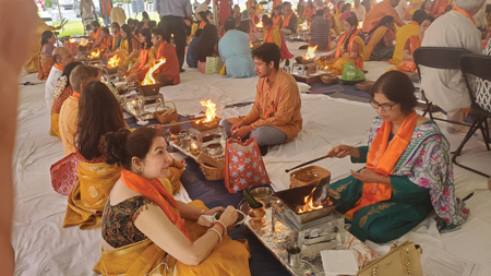This year’s Mahayajna was based on Yajurveda, with chants to invoke unity, purity, and peace. The purifying and fragrant herbs offered to the holy fires did indeed sanctify the atmosphere, invoking the ancient Vedic practices of maintaining the environment for all living beings. The Mahayajna was officiated by Acharya Hariprasadji who kept the audience’s attention by expounding the mantras in a way relevant to today’s times.