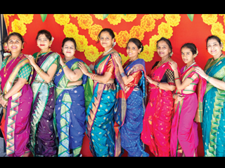 [Left] Women dressed in traditional nauvari on the occasion of Gudi Padva.