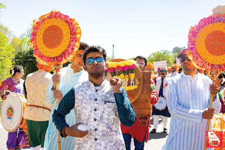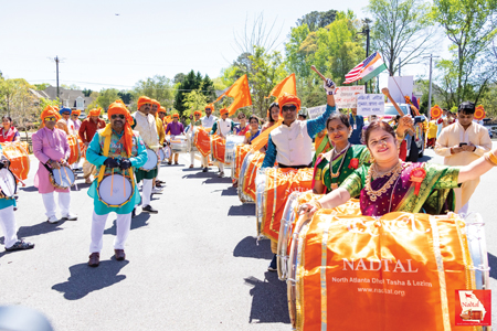 North Atlanta Dhol Tasha and Lezim (NADTAL), an organization focused on groups playing dhol, tasha, and lezim, and created to preserve the tradition, heritage, and culture of Maharashtra, organized a Shobha Yatra on Gudi Padva, the traditional new year for Marathi Hindus, at Chinmoy Gurukul, Alpharetta, on April 13, 2024.