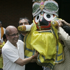 Although the festival is now celebrated all over the world, the Hanuman Mandir celebrates it in a special way. Swami Adyananda Saraswathi Maharaja has been supervising the festival at Hanuman Mandir since its inception. An erudite Sadhu, he knows the entire process of Jagannath worship and Ratha Yatra as performed in the holy dhaama of Puri, India. With his guidance and the help of volunteers, the Hanuman Mandir celebrates this festival with original traditions, performing the rituals exactly as done in Puri.