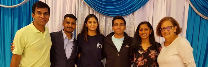 At the Packs4Peers Charity Math Tournament: Pramod Waingankar (Volunteer), Narsimha Tambareni (Guest), Anjali Atluri (Volunteer), Omkar Waingankar (Founder), Kirtana Mohan (Volunteer), Julie Brennan (Guest).