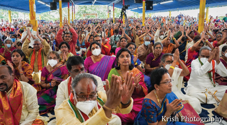 [Top] A crowd of 3000 devotees gathered to witness the wedding rituals of Balaji’s celestial wedding.