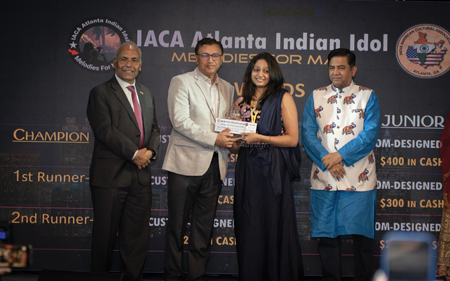As mellifluous strains of Bollywood music engulfed Impact Hall at Global Mall in Atlanta on October 7, 2023, new champions emerged from an abundant repertoire of talented singers at the Atlanta Indian Idol (AII) Championship presented by India American Cultural Association (IACA). Avinash Lanka, who wowed the judges and the audience with his rendition of “Kesariya” from Brahmastra secured his victory in the Adult category. Aashi S Allani, who stole everybody’s heart with her dulcet voice in the song “Khamoshiyan” from the movie Khamoshiyan, took home the crown in the Junior category.