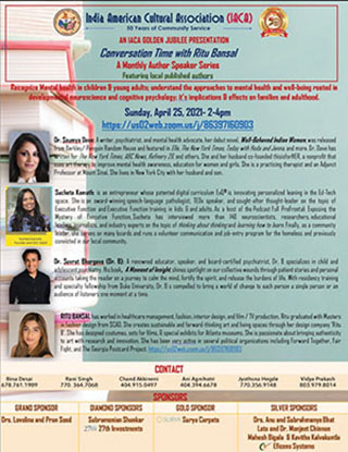 The India American Cultural Association (IACA) has been celebrating its Golden Jubilee and 50 years of community service through its ongoing monthly author speaker series “Conversation with Ritu Bansal.”