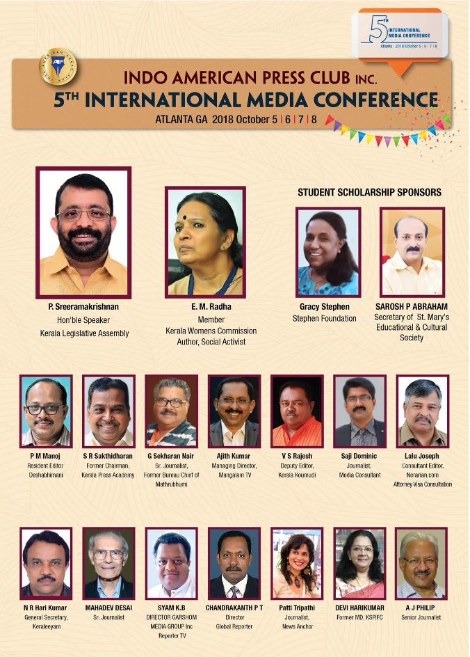 The Government of Kerala was in the process of revamping the flood relief program to make it more transparent, said P. Sreeramakrishnan, Speaker of the state’s Legislative Assembly. He was speaking at the closing ceremony of the Fifth International Media Conference of the Indo-American Press Club at the Atlanta Airport Marriott Hotel, Georgia on Sunday, October 7, 2018.