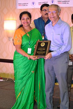 (Left) Special recognition was given to veteran journalist Mahadev Desai of Atlanta.