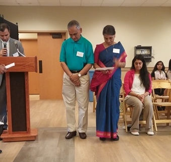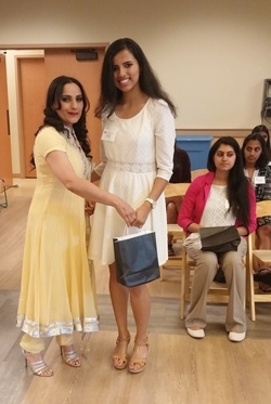 The banquet began with an introduction by Dr. Anuj Manocha, IASF chairman, who then introduced Mr. Kaushal Tripathi, Board member of IACA, to talk about IACA events. Dr. Ravi Sarma, the founder of IASF addressed the class of 2016 and gave valuable advice to parents and graduates. Mrs. Rina Gupta, IACA president, presented each member of the class of 2016 with a gift from IASF of a t-shirt and a book for college, How to Survive Your Freshman Year. Finally, the process of giving the scholarships began. This year 25 scholarships were awarded totaling over $35,000 including two four-year scholarships, two two-year scholarships and seven one-year scholarships.