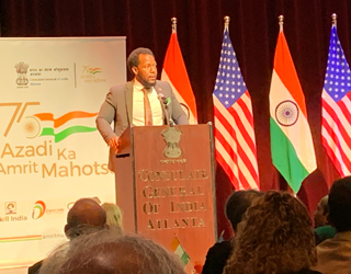 Not only did Dr. Kulkarni emphasize the importance of by discussing their joint economic efforts and shared business developments, developments, she also highlighted some of the Consulate’s efforts in strengthening the bilateral relationship between India and the U.S. by mentioning her visits to all of the states and territories in her jurisdiction, her meetings with political leaders, the Consulate’s support of Indian companies in the Southeast, and their current efforts to introduce Atlanta’s CEC Newnan educational model to vocational schools in India. She concluded her remarks by sharing many of the Atlanta Consulate’s achievements over the past few years and echoing Prime Minister Modi while sharing her image of India’s future saying, “From tomorrow onwards, the country will enter the golden period, which we call Amrit Kaal, of its independence, an era of countless new opportunities.”
