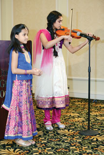 The national anthems of India and the USA began the evening, but this time they were gracefully rendered on the violin by seventh grader Hansinee Mayani with her younger sister Nishtha, as Rifka Mayani emceed.