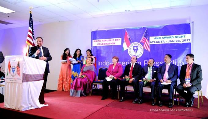 Indo-American Press Club–Atlanta Chapter (IAPC-A) hosted its first Republic Day celebration and awards ceremony at Ashiana Banquet Hall in Global Mall, Norcross on Saturday, January 28. The grand reception was graced by the presence of Consul General Nagesh Singh, Consul D.V. Singh, Chairman of the Board of Commissioners for Gwinnett County Charlotte Nash, and leading members of the Atlanta community.