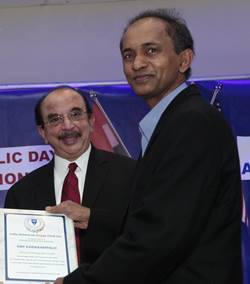 | Award of Honor: i)Mustafa Ajmeri, social activist and promoter of performing arts. | ii) Sabu Chemmalakuzhy (right), dedicated volunteer in the Indo-American community. |