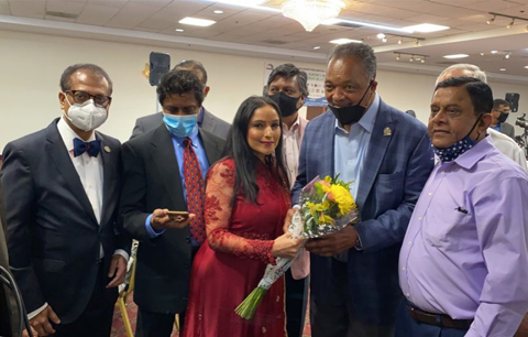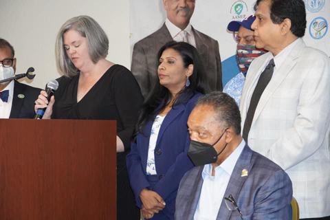 Dr. Kalai Chellam Parthiban, President of the Georgia Chapter of the American Association of Multi Ethnic Physicians (AAMEP) as well as past President of the American Tamil Medical Association (ATMA), served as the event moderator. Recognizing Reverend Jackson as the recipient of the 2000 Presidential Medal of Freedom, America’s highest civilian honor, she thanked him for his initiative in helping India at the time of its need, particularly for his efforts in urging the U.S. administration to send 16 million doses of unused AstraZeneca vaccines to India which have been stockpiled in Baltimore, MD.