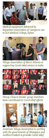 Telugu Association of Metro Atlanta (TAMA) has extended support in procuring multipara monitors, oxygen concentrators, medical kits, non-rebreather masks, non-invasive ventilation and regular masks. They are working to support Covid relief centers, vaccination drives and government initiatives in those areas. “TAMA is working with many organizations in achieving these goals,” said SaiRam Karumanchi, General Secretary, TAMA.