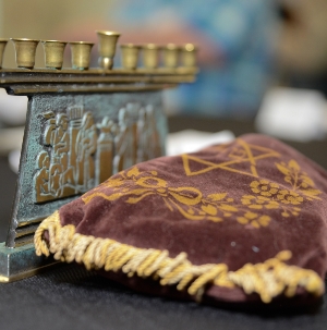 (Left) The Menorah (Hanukkah lamp), pictured here, was among the many items that were shared at the event. Many of these items are family heirlooms, passed down from generation to generation. (Photos: Naushad Virani)