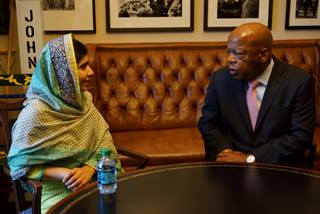 John Lewis with Malala: "6/24/15: Very pleased and delighted to have been visited yesterday by Malala Yousafzai. She is an inspiration to us all."